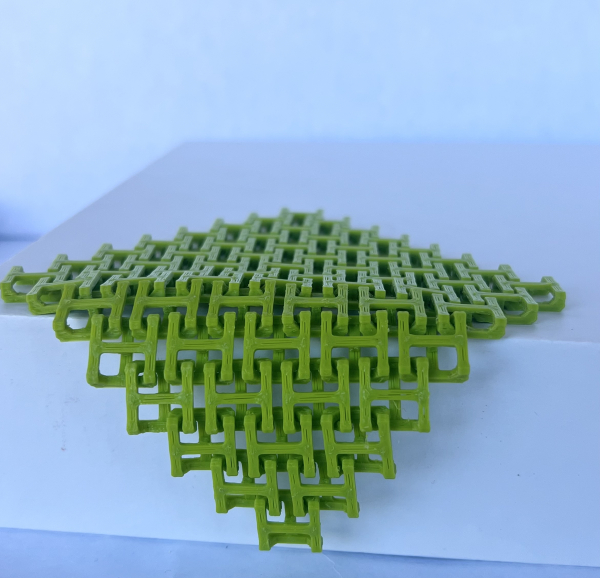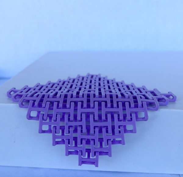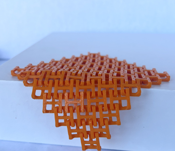 Made of 3D-printed interlocking pieces that create a fabric-like square with a satisfying texture and sound!