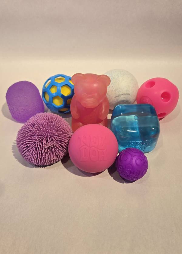 We've put together a few of our favorite Nee Doh Balls just for you! This 9 piece Nee Doh Ball kit includes: Atomic Nee Doh, Color Changing Nee Doh, Gum Drop Nee Doh, Gummy Bear Nee Doh, Nice Cube Nee Doh, Wonder Waves Nee Doh, Snow Ball Crunch Nee Doh, Happy Snappy and a Teenie Single Nee Doh (your choice of glow in the dark/swirl/groovy glob/ripples). Each items has a different texture, weight and overall sensory experience.