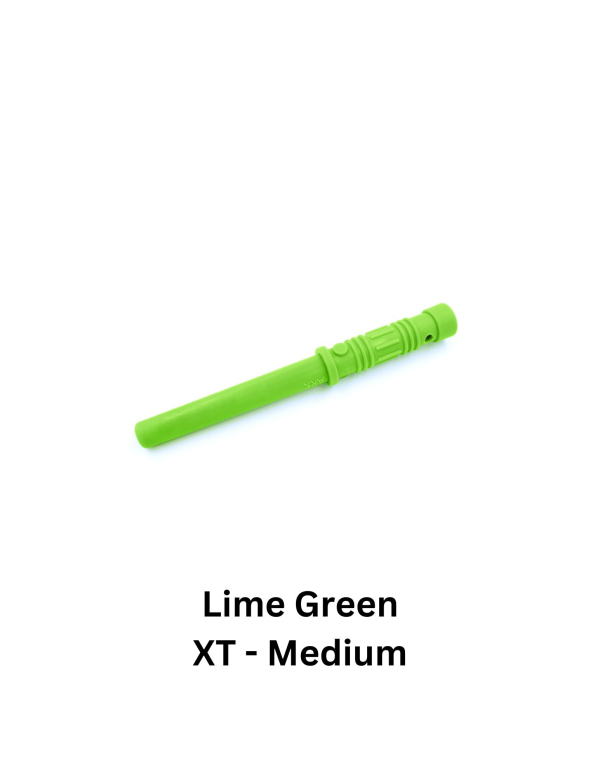 The Mega Bite Saber is a handheld chew that has a hole on one end in case you'd like to add it to a cord. This chew tool is a safe outlet for anyone who needs to chew, and an effective way to help calm, self-regulate, and focus. It's long enough to reach the back molars for proprioceptive input to the jaw and masseter muscle.