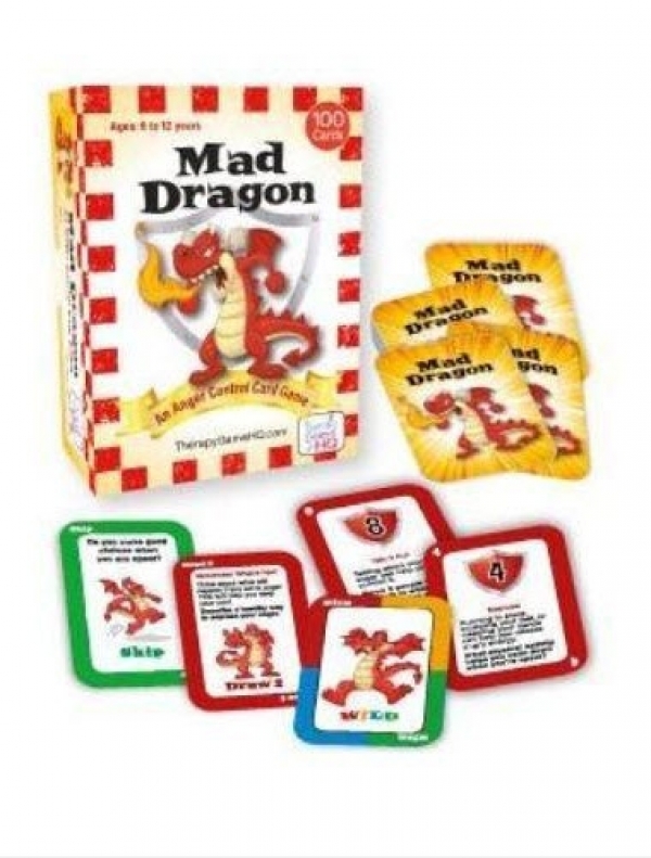 This fast-paced card game helps children control their anger in the moment, practice 12 effective anger management techniques, understand what anger feels and looks like, avoid anger-provoking situations, learn healthy decision-making skills, express and understand their feelings, identify anger cues, and learn that they have choices about how to express anger. Mad Dragon is based on the classic game Crazy Eights. Players race to get rid of their cards while learning to manage their anger. For 2 to 8 players, this fun and easy-to-play game includes 100 cards (4½" x 3") and an instruction booklet. Grades 1 to 6.