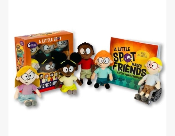 This box set includes 6 cute and huggable friends plus a plush wheelchair that can be used with any of the dolls. It also includes the book A Little SPOT Makes Friends. This set was developed to help children role-play making friends and solving conflict. These friendship buddies have been featured in several little SPOT books and are a great addition to the Little SPOT family!