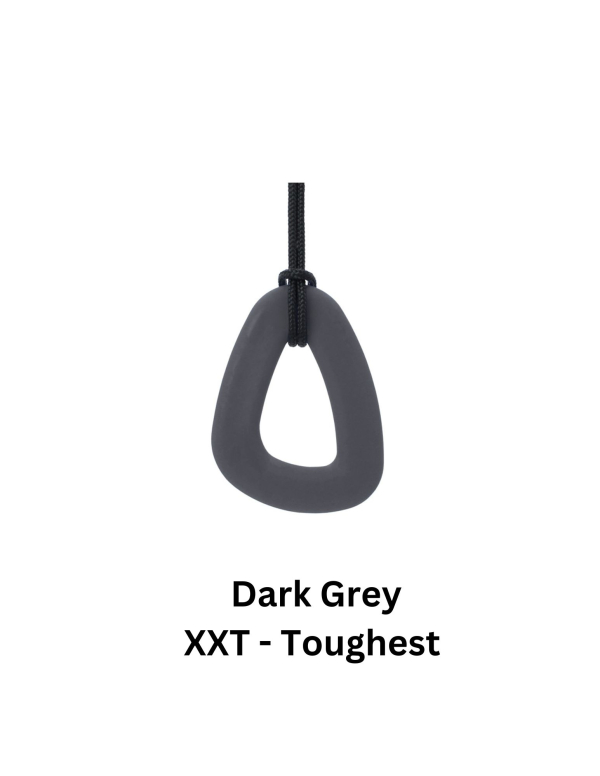 At just .2" thick, ARK's Chewable Loop Necklace is our thinnest chewelry option, even thinner than the Chew Tags, Arrowhead, or Chewth Pick. Because of how thin the pendant is, each level of the Loop will feel softer/chewier than thicker necklace styles. So it's perfect for anyone looking for something very soft to chew on. The Loop necklace was also specifically designed for teens and adults with a simple, discreet look and neutral colors. Use this thin necklace as a safe alternative to chewing on pencils, shirts, fingers, etc. and to help calm, focus, and self-regulate.